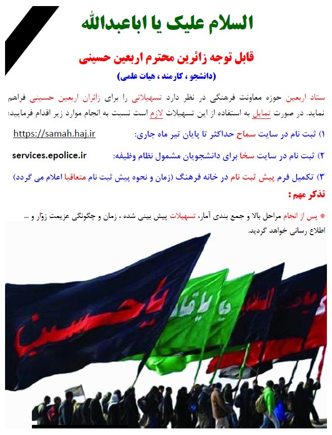 قابل توجه زائرین محترم اربعین حسینی - معاونت فرهنگی