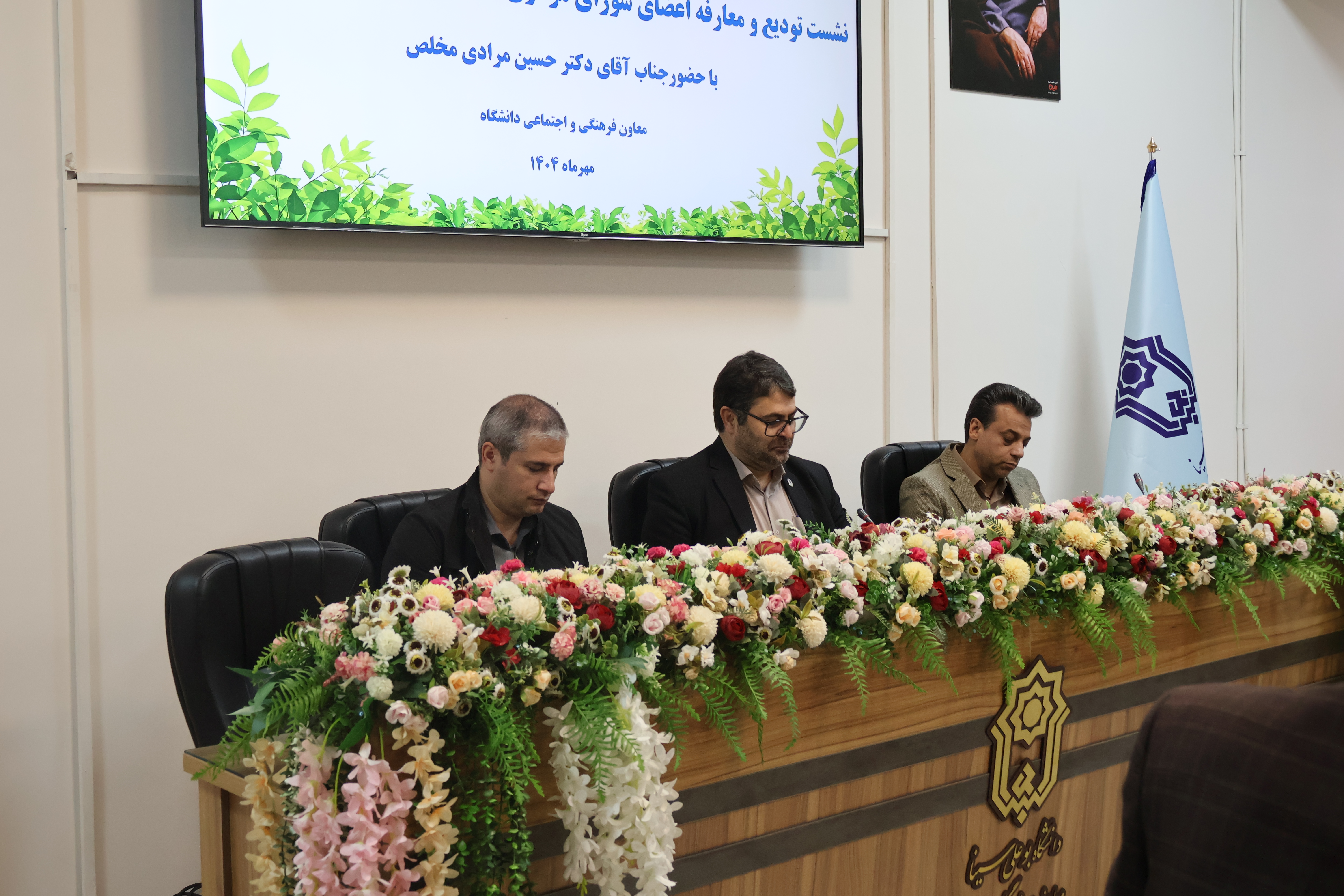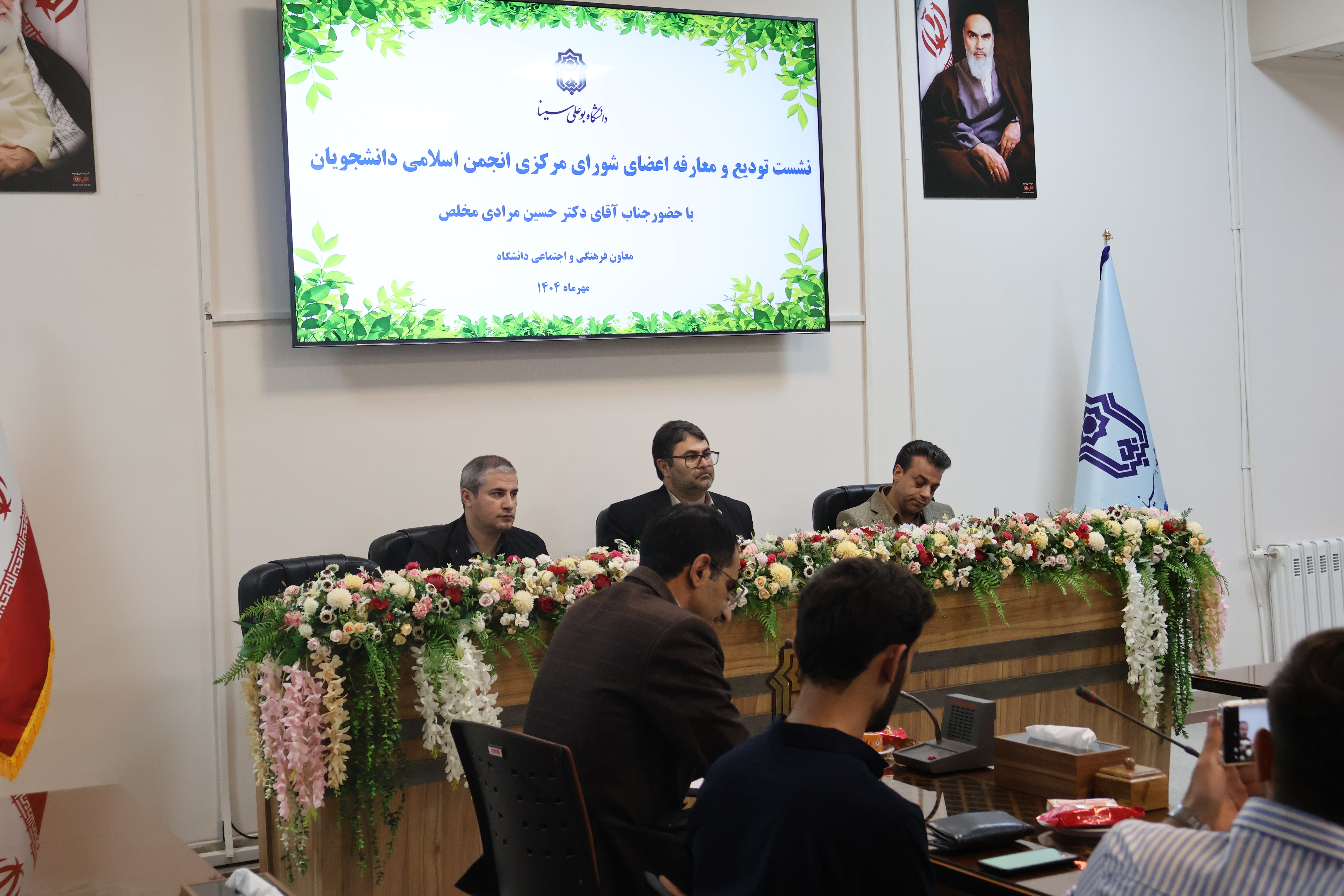مراسم تودیع و معارفه اعضای شورای مرکزی انجمن اسلامی دانشجویان دانشگاه بوعلی‌سینا با حضور معاون فرهنگی و اجتماعی دانشگاه، مدیران فرهنگی، رئیس نهاد نمایندگی مقام معظم رهبری در دانشگاه‌ بوعلی سینا و جمعی از فعالان فرهنگی در محل خانه فرهنگ برگزار شد.